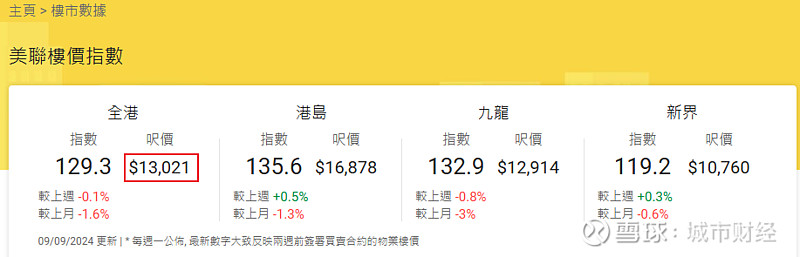 到今年9月10日,香港整体均价跌到了13021港元/平方英尺,换算成人民币/平方米则是12.8万元/平方米。